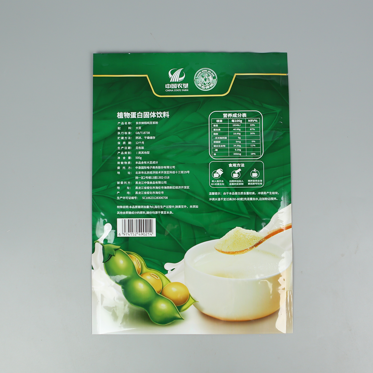 產(chǎn)品名稱(chēng):500g純豆漿粉+亮面塑料復合+三邊封