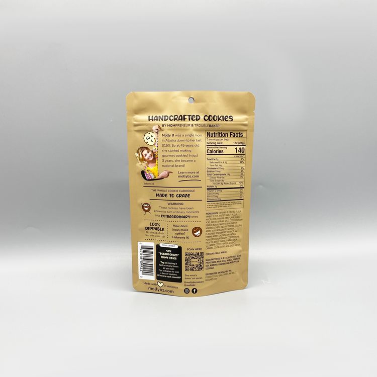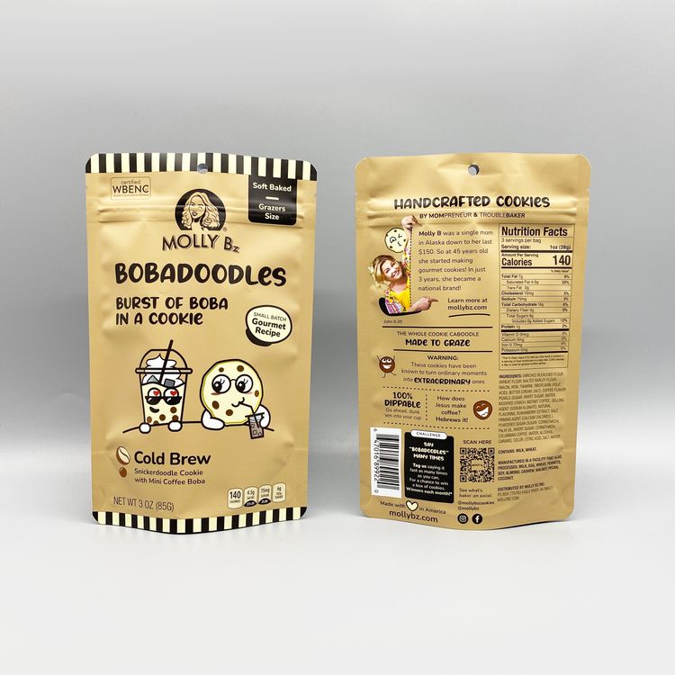 餅干袋采用自立拉鏈袋設計,集時(shí)尚與實(shí)用于一身