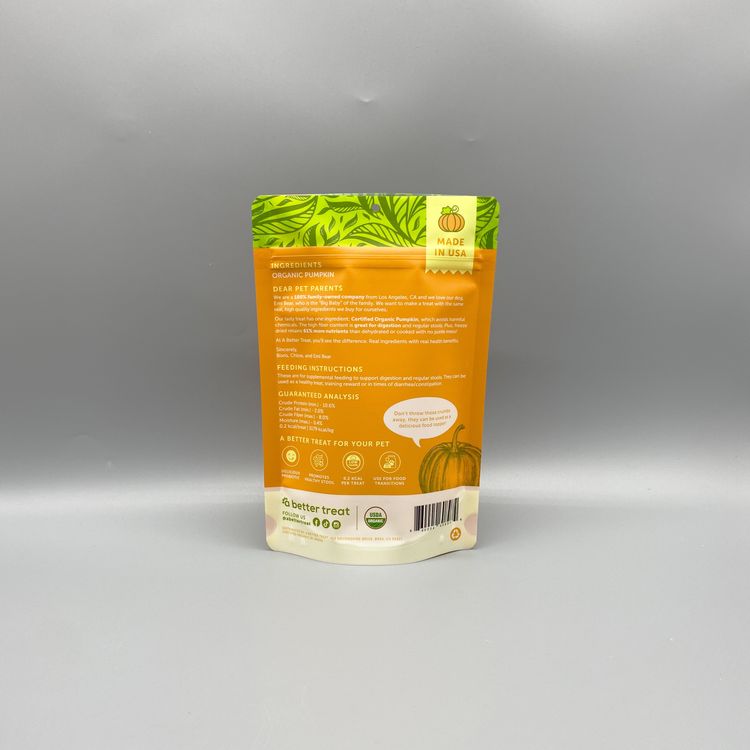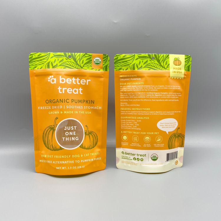 產(chǎn)品名稱(chēng):寵物食品南瓜泥28g自立拉鏈袋開(kāi)窗