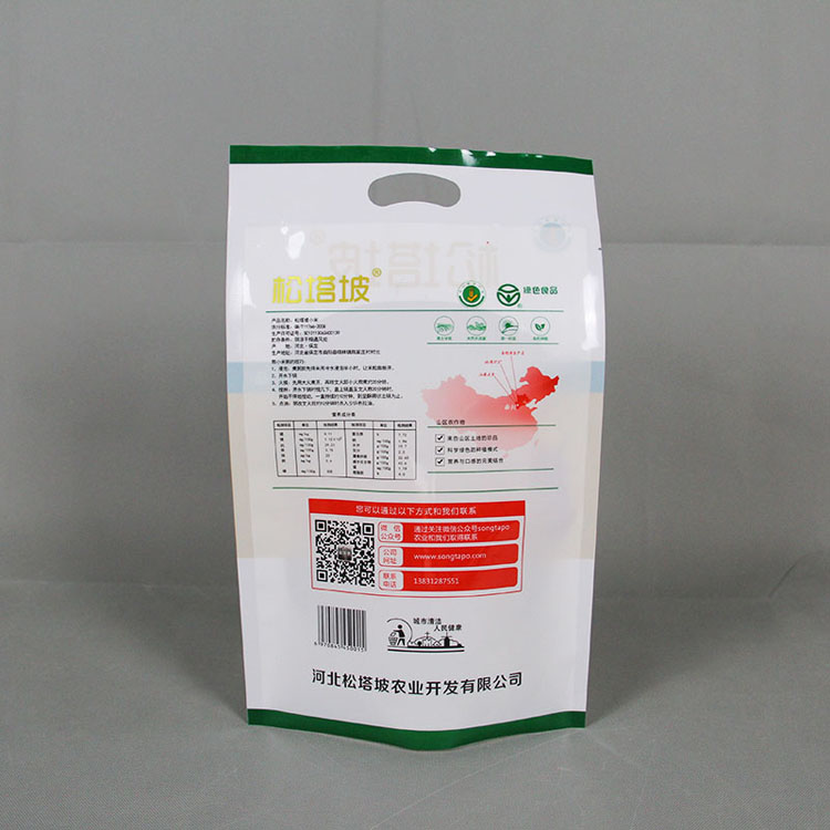 大米小米包裝袋有時(shí)候作為直接包裝,因此需要做成真空袋,又稱(chēng)貼身防潮袋、鋁箔袋、鋁塑復合袋,其材質(zhì)一般為PET/AL/CPE或PET/NY/AL/CPE.其中PET——印刷效果好,NY——透氧性低,AL——阻隔性強、不透光,CPE——包裝內層。膠水:水溶性膠水(更加衛生、環(huán)保、無(wú)溶劑殘留量)此產(chǎn)品具有良好的防靜電、隔氧、屏蔽、防潮、遮光功能及優(yōu)良的熱封性。