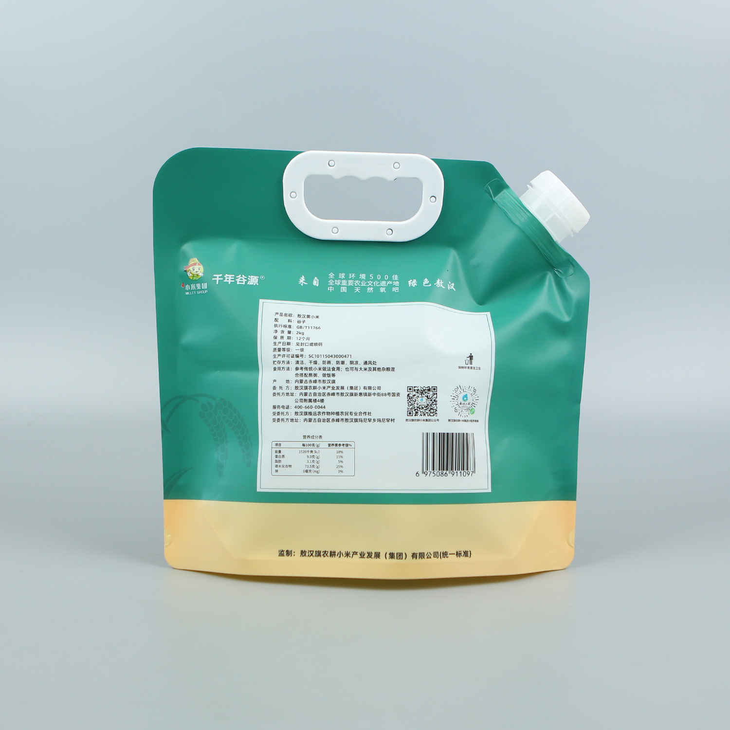 產(chǎn)品名稱(chēng):2kg黃小米袋+UV塑料復合+自立帶吸嘴