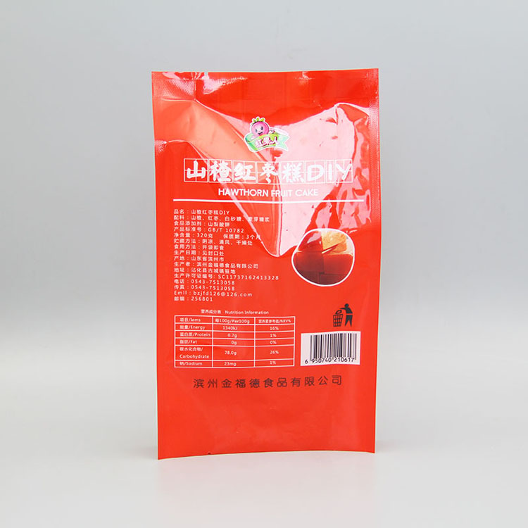 產(chǎn)品名稱(chēng):320g山楂紅棗糕+亮面塑料復合+四邊封包裝袋