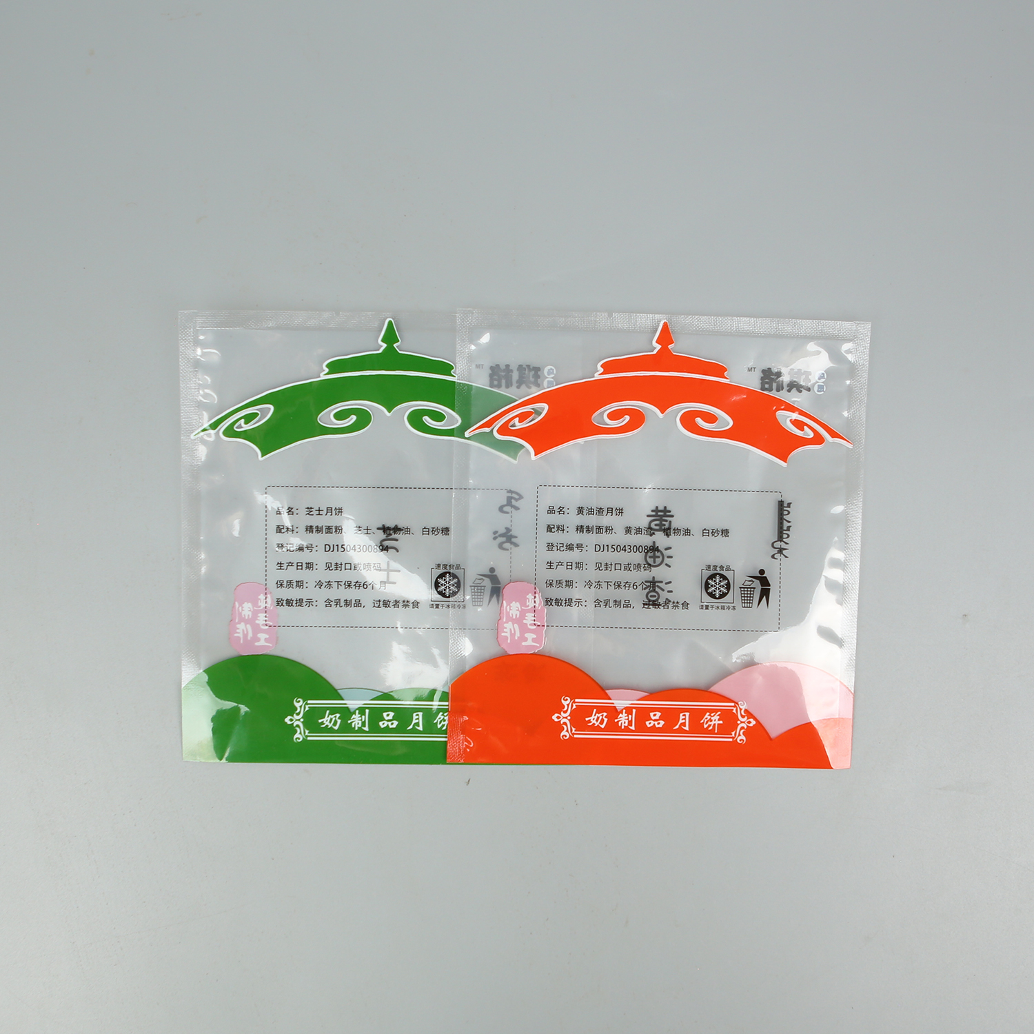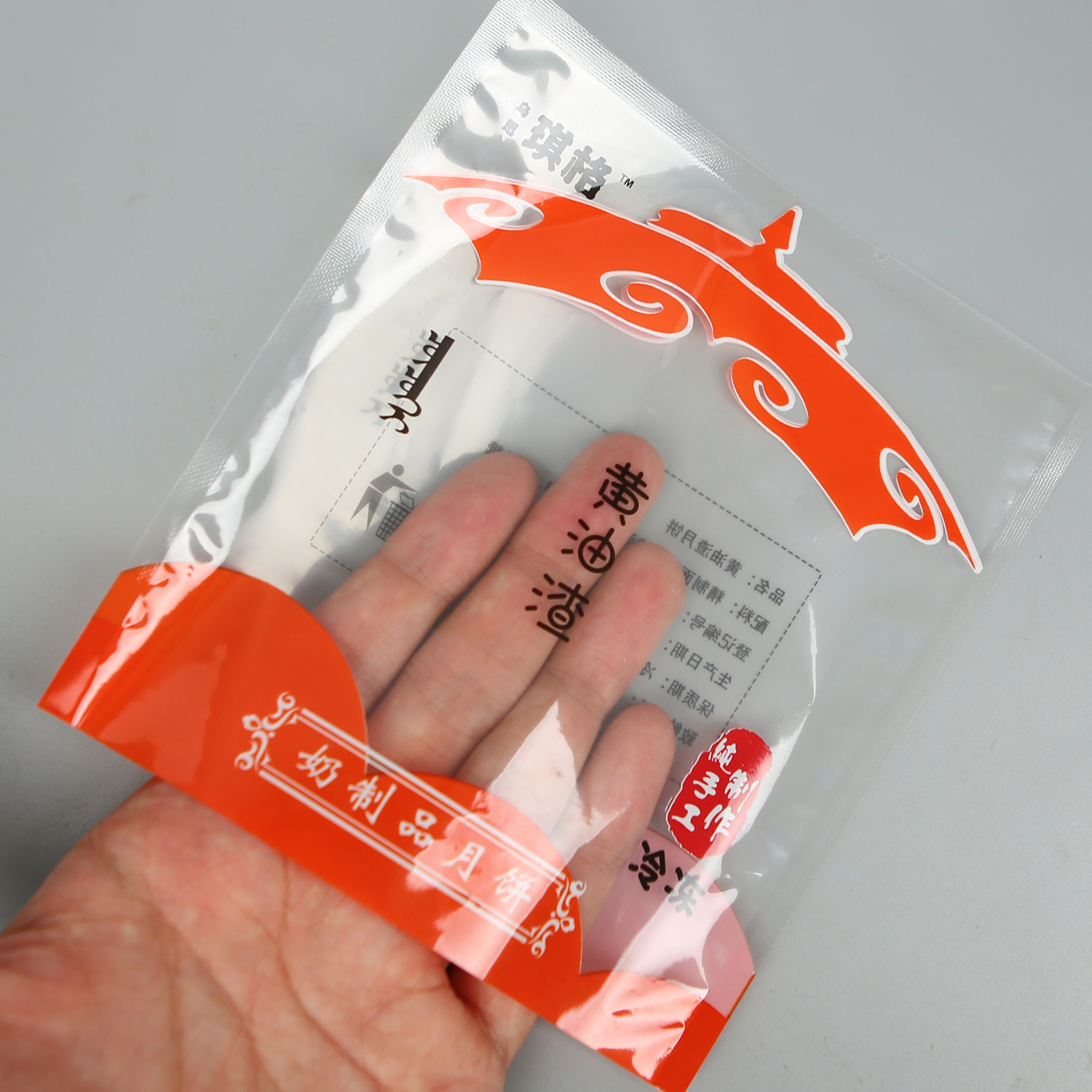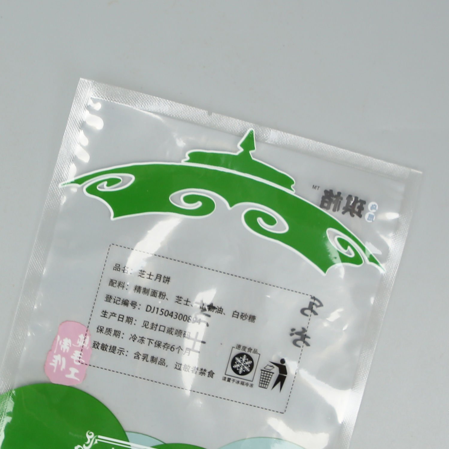 產(chǎn)品名稱(chēng):黃油渣芝士月餅+亮面塑料復合+三邊封